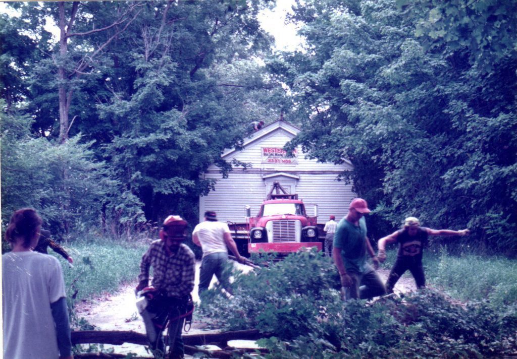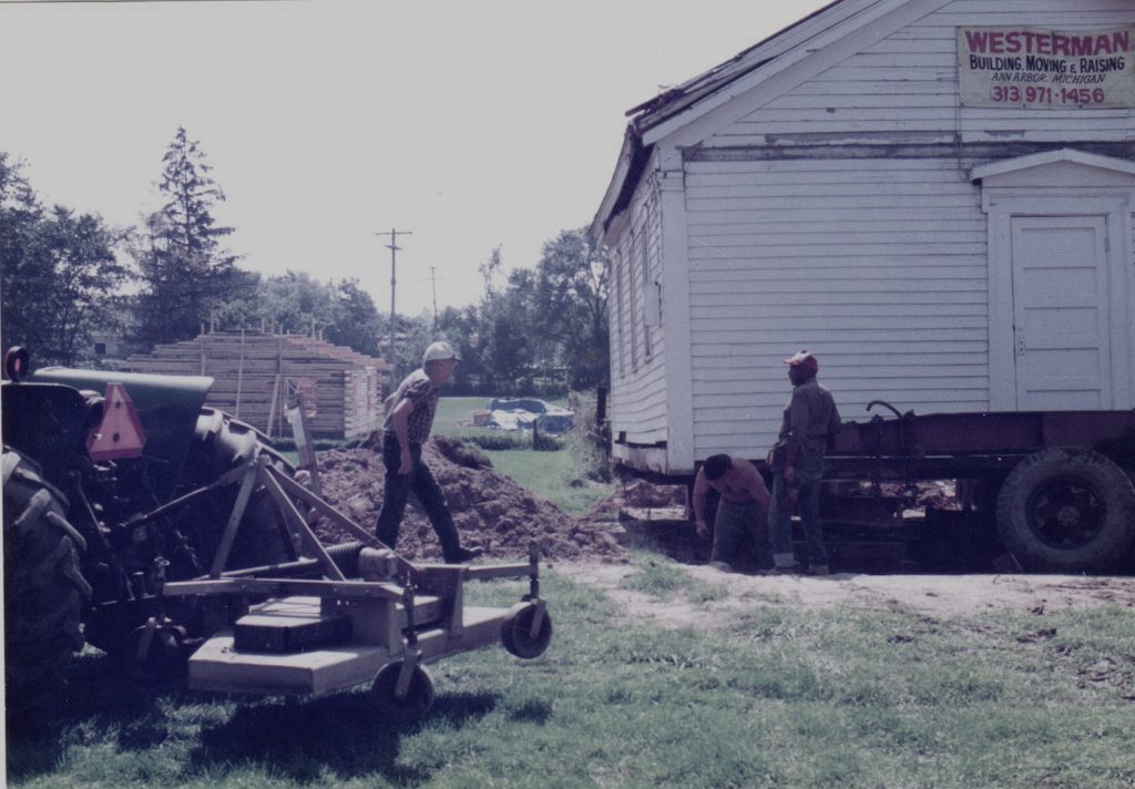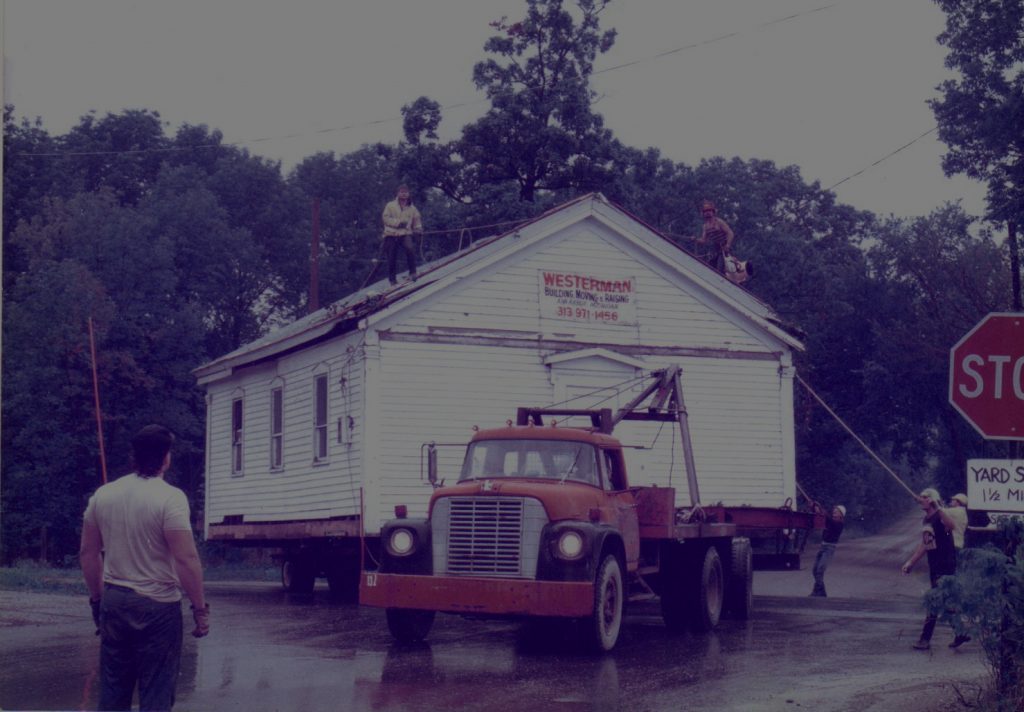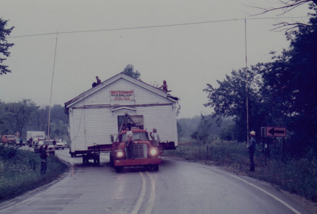 WTHS purchased the Podunk School building in 1992. On September 9, 1992, the building was loaded intact onto wheel dollies. After trimming trees for clearance, it was moved eight miles down Walsh, Mast, North Territorial and Webster Church Roads to Historic Webster Village. See the photos below of the move.